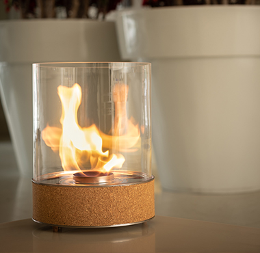 コンパクトに炎を楽しめる暖炉。屋内でも屋外でも気軽に持ち運び出来、場所を選ばず炎を楽しんでいただけます。デザインも本体表面にコルクが使用されていますのでインテリアにうまく溶け込みます。